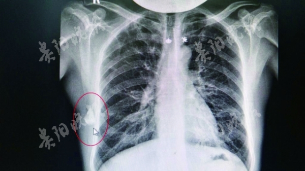 “CT顯示,他背部肩胛骨下方有異物,但并不確定是什么物體。”該院外科執行主任柏帆說,結合鄭發興此前摔傷的病史,醫生懷疑這塊異物應為6年前摔傷留下的。