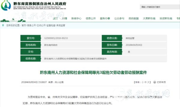 因涉嫌拒不支付勞動報酬罪,2018年1月2日,凱里市人力資源和社會保障局依法將該案移送凱里市公安機關(guān)立案查處。2018年1月17日,公安機關(guān)立案辦理。2018年2月13日,貴州省富藍(lán)物業(yè)服務(wù)有限公司支付所拖欠工資。