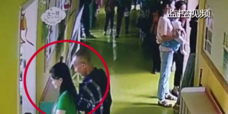 從幼兒園內的監控可以看到,6月8號下午放學時間,一名老人徑直走進了教室,幾分鐘后出來,還轉身催促身后的孩子跟著一起走。