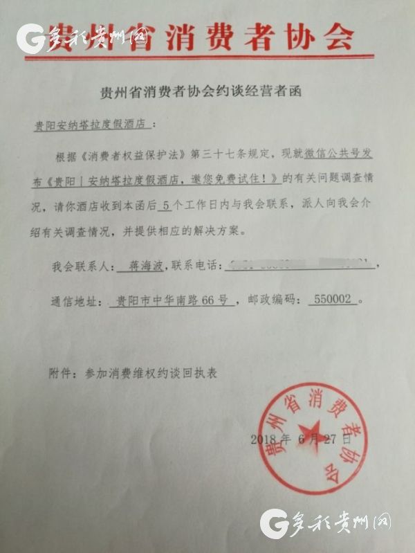 為了維護(hù)消費者權(quán)益,消除此事對消費者造成的誤導(dǎo)和不良影響。7月5日上午,貴州省消費者協(xié)會約談了貴陽安納塔拉度假酒店相關(guān)負(fù)責(zé)人,并針對該事件履行社會監(jiān)督職能。
