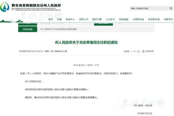 黔東南州人民政府網(wǎng)站截圖
