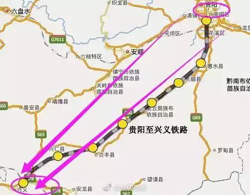 貴興鐵路途經貴陽市,貴安新區、黔南州的惠水、長順,安順市的紫云、關岒、鎮寧,黔西南州貞豐、興仁、義龍、興義,黔西南州首府興義南站。