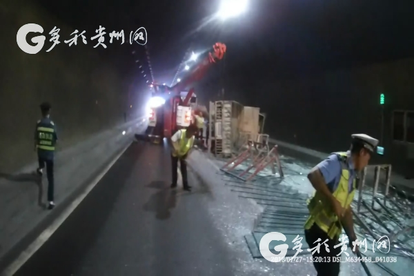 7月27日下午15時許,黔南州公安局交警支隊高速交警二大隊貴都一中隊接到貴都信息中心轉警,稱在貴都高速貴陽往都勻方向新車隧道內發生七車追尾事故,同時隧道出口處有一輛運輸玻璃的貨車側翻,請出警。