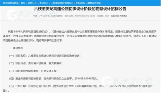 六枝至安龍高速公路路線起于六枝縣城南部的同云村,與都香國高(G7611)搭接,向西南經月亮河鄉后轉向正南,以主跨150m、180m剛構橋跨越水黃公路及丙己河,由關嶺城區規劃西側至尾納下穿現有滬昆高速(G60),于北口鄉附近設雙T型互通與滬昆高速搭接,路線繼續向南,經上關、至花江后下坡,設5480m特長隧道穿越大山,并展線以主跨1018m懸索橋跨越北盤江,再經平街、沿貞豐縣規劃西側穿過,于貞豐老城區西北側與現有惠興高速交叉,爾后經挽瀾、龍山、篤山、錢相、普坪后止于安龍縣西面的三棵樹,設T型樞紐互通與汕昆高速搭接。路線全長152.808km(長鏈共計0.177km),其中:六枝境約24km、關嶺境約40km,貞豐境約45km,安龍境約43km。