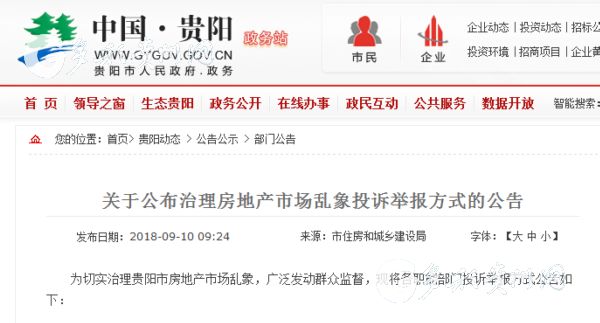 市公安局:舉報電話110;微信公眾號貴陽110(負責房地產犯罪方面的查處工作);