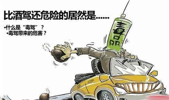 交警提示:吸毒后駕車,會導致駕駛員精神極度亢奮,大腦出現幻覺、妄想,判斷力低下等狀況,嚴重危及人民生命財產安全。據權威測試顯示,酒后駕車比正常反應時間慢12%,“毒駕”則比正常反應時間慢21%。