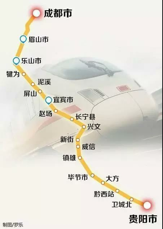 成貴高鐵起于成都市,途經(jīng)四川省眉山市、樂(lè)山市、犍為縣、屏山縣、宜賓市、長(zhǎng)寧縣、興文縣,云南省的威信縣、鎮(zhèn)雄縣,貴州省的畢節(jié)市七星關(guān)區(qū)、大方縣、黔西縣,終至貴陽(yáng)市。連接西成高速鐵路、渝貴鐵路、貴廣高鐵、滬昆高鐵。2013年12月正式開(kāi)工,預(yù)計(jì)2019年底建成通車。