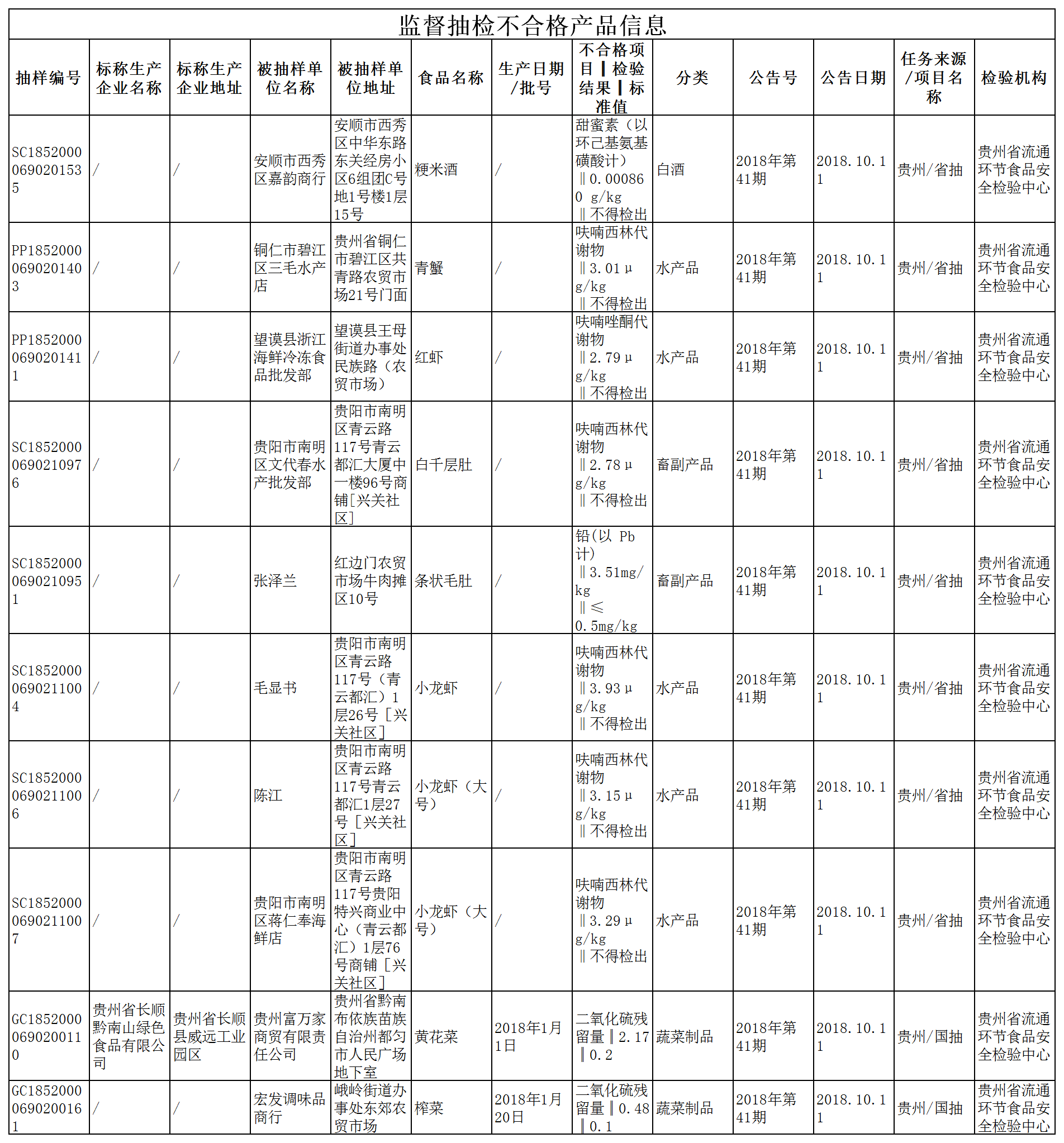 公告顯示,本次抽檢罐頭60批次、水果制品30批次、飲料120批次,所檢樣品全部合格。本次抽檢酒類82批次,其中1批次不合格;抽檢食用農產品419批次,其中7批次不合格;抽檢蔬菜制品41批次,其中2批次不合格。