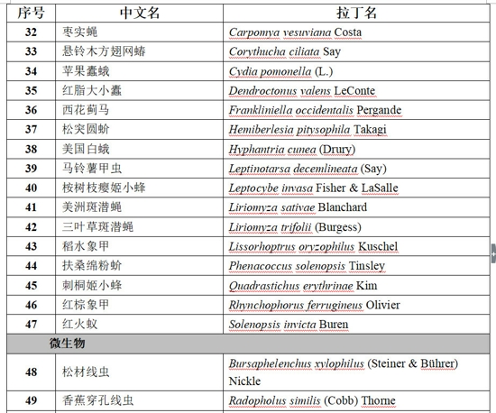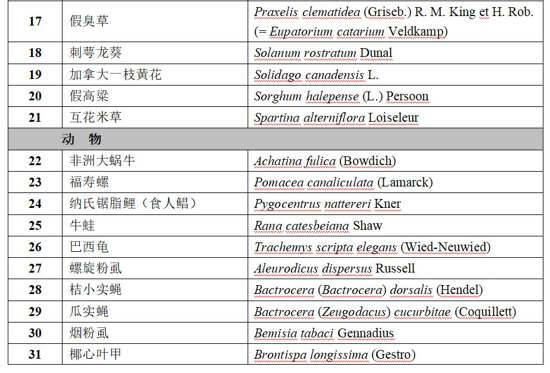 國家重點(diǎn)管理外來入侵物種名錄(第一批)