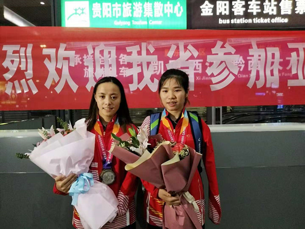 10月15日晚,6名運動員搭乘航班抵達貴陽龍洞堡國際機場。在機場,記者見到了來自貴陽市的選手程和芳、楊秋霞,她們分別在女子sl4級比賽、女子su5級比賽中獲得金牌。