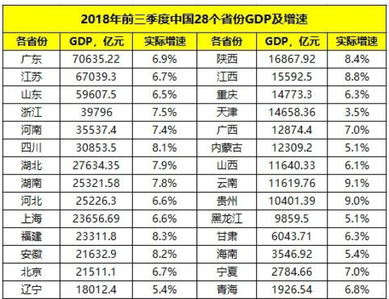 就目前已公布數據的28個省份中,已有云南、貴州、江西、陜西、福建、安徽、四川、湖北、湖南、浙江、河南、寧夏、廣西、廣東、青海等15個省份增速超過全國水平(6.7%)。與全國GDP增速持平的是北京、江蘇兩地,另外,上海、河北、山東、重慶、甘肅、山西、海南、遼寧、內蒙古、黑龍江、天津等11省份GDP增速低于全國水平。