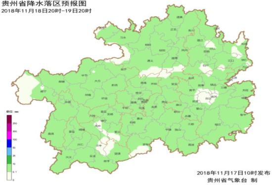 據貴州省氣象局最新監測顯示,11月16日08時至11月17日08時,全省大部地區陰天有小雨,東部邊緣局地有中雨,夜間到早晨全省共出現霧18站,大霧11站。