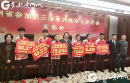 11月26日,記者從貴州省殘聯召開的表彰會上獲悉,在近日舉行的第三屆亞洲殘疾人運動會上,貴州殘疾人運動員共獲得9枚金牌,10枚銀牌,并打破一項亞洲紀錄,創亞殘運會史上貴州運動員最佳成績。