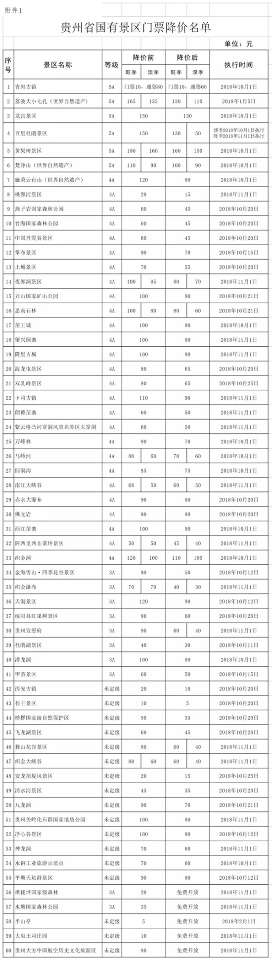 近日,貴州省發展改革委公布了《貴州省重點國有景區降價名單》和《貴州省政府定價景區門票價格》,明確我省60個景區將降價,112個景區門票執行政府定價,標志貴州省重點國有景區降價工作全部完成。