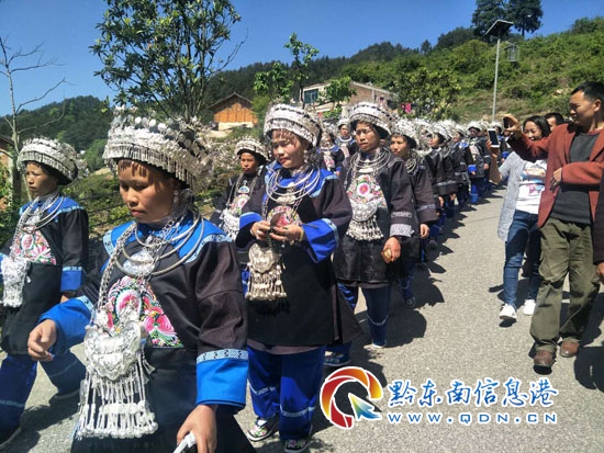 本網訊 4月18日上午,2018鎮遠情定“報京三月三”民俗文化節開幕,當地侗族同胞身著盛裝,載歌載舞,歡慶節日。