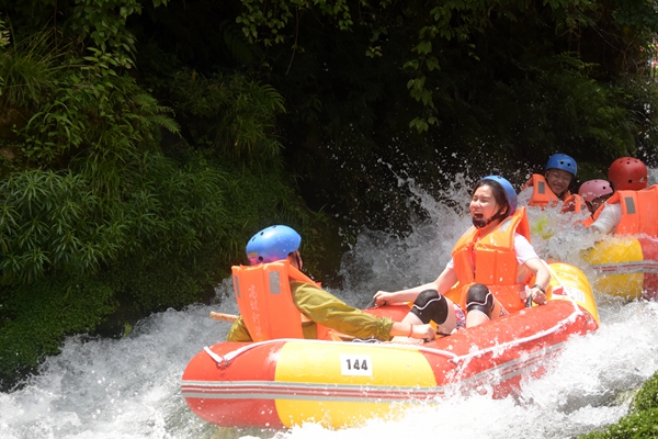 當(dāng)天,景區(qū)舉辦了“漂流世界杯,跟著超級(jí)英雄去尖叫”炫彩狂歡漂流第三季的開漂儀式。