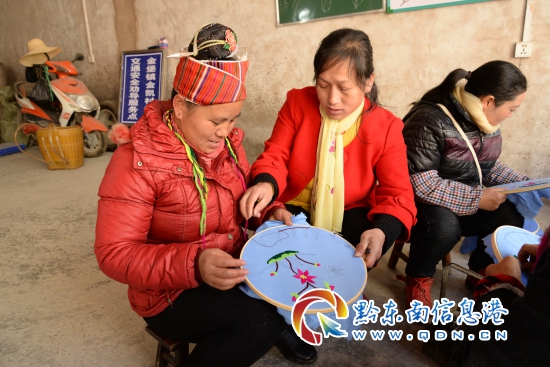 “我以前只會(huì)繡苗族衣服上一些簡(jiǎn)單的繡花,不會(huì)繡現(xiàn)在老師教的這個(gè)雙面繡,授課老師非常有耐心,一針一線的教我們,兩天就學(xué)會(huì)了,以后我要把這些繡到其它衣服、手帕上去,和我們苗家的刺繡結(jié)合起來(lái)拿出去賣,增加些收入。”金堡鎮(zhèn)金凱村王五坡組村民潘月柒樂(lè)樂(lè)呵呵的說(shuō)道。