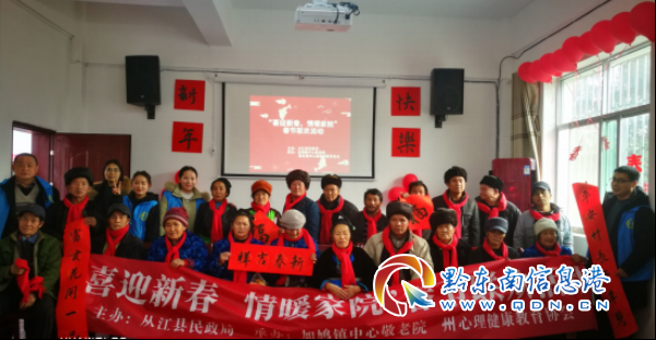 本網訊 “老吾老以及人之老”,敬老愛老作為中華民族的傳統美德。為了讓敬老院老人感受到政府的關心、社會的支持、共享改革開放40周年惠民成果,實現物質和精神同步脫貧,2019年1月26日,在黔東南州民政局,從江縣縣委、縣政府、縣民政局等相關部門的牽頭組織下,州心理健康教育協會 “社工黔行”項目團隊攜同社會愛心人士,帶著溫暖和問候來到從江縣加鳩鎮中心敬老院,與院內20余名老人共同舉辦了 “喜迎新春,情暖家院”的春節聯歡活動。