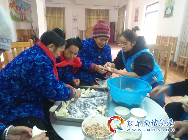 活動伊始,從江縣縣委書記吳鵬一行人在縣民政局局長梁仲權的陪同下,給院內老人們送上新春的祝福,并向老人們發放春節慰問金。活動中,社工們結合新春佳節,邀請了凱里書法家協會郭力老師為老人寫春聯,組織老人們一起參與社工游戲互動,歡笑聲和掌聲匯聚一堂。同時,來自黔東南州武協太極拳研究會會長胡遠陸老師為老人們表演太極拳,并且許諾老人后期將逐步教老人們學習太極拳,強身健體;凱里市陽光藝術團的愛心人士為老人獻唱《祝您健康》、《夕陽紅》等歌曲,讓老人們感受到動聽的歌聲和美好的祝愿。活動最后,社工組織院內老人們清潔、整理活動會場,貼春聯、掛燈籠,讓老人們自己動手美化院內環境。此外,社工們陪同老人們一起包餃子,與院內老人一起吃年飯,切實讓老人們體會到了家的味道,感受到黨和政府的溫暖、關懷。