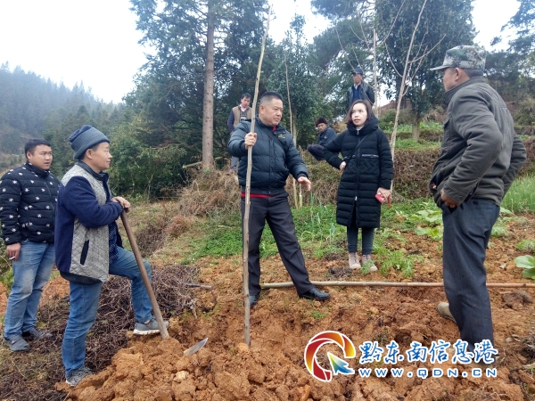 貫洞鎮農業服務中心主任楊遠威示范打果苗穴槽的尺寸