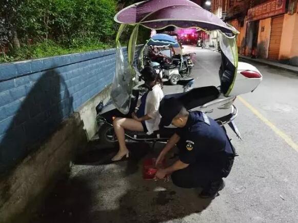 當(dāng)日凌晨1時許,特巡警三中隊巡邏小組對轄區(qū)開展日常巡邏防控工作時,在古榕廣場路段時發(fā)現(xiàn)一女子癱睡在摩托車上,便立即上前查看,看到該女孩滿身嘔吐物屑,酒氣濃烈且意識不清,隨身攜帶的手機(jī)和錢包都散落一地。為確保其生命財產(chǎn)安全,特警隊員試圖叫醒該女子,但多次叫喚仍無反應(yīng),周邊群眾也無人認(rèn)識該女子,于是特警隊員試著用其手按住手機(jī)指紋解鎖,在打開手機(jī)后立即撥打電話與其家人取得聯(lián)系,表示會立即趕過來。