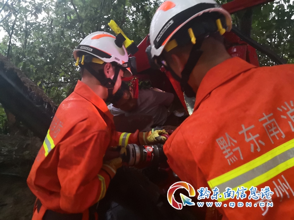 當時正下著大雨,為確保被困人員盡早脫困,消防員立即利用液壓破拆工具展開救援。經(jīng)過消防員十多分鐘的救援,被困人員被成功救并出送往醫(yī)院救治。