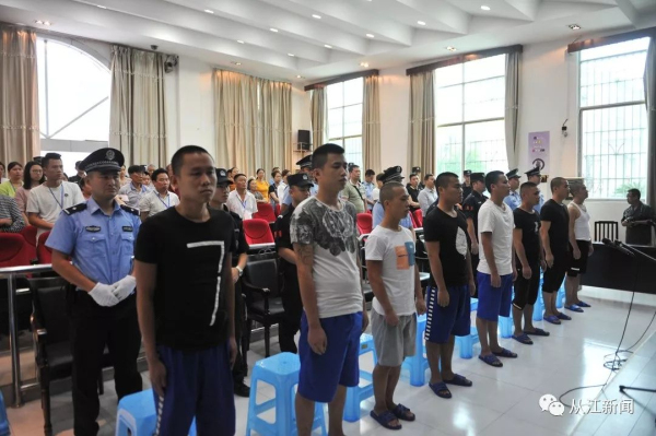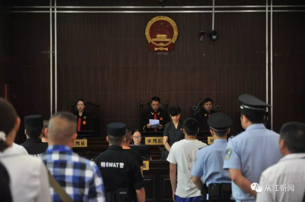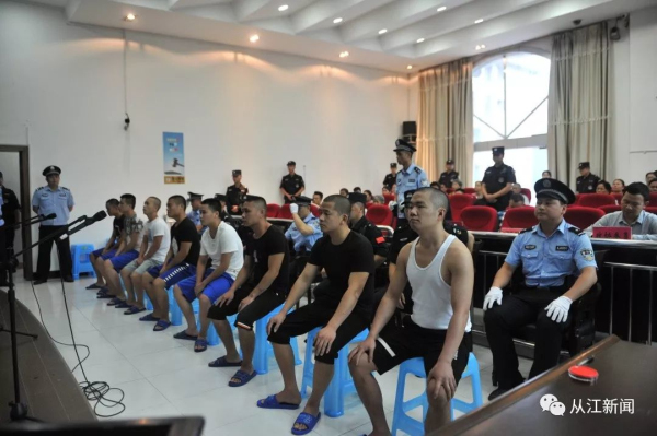 7月19日上午,從江縣人民法院公開宣判被告人任劍江、陳松、羅增林、呂曉輝、劉凱波、石偉、張貴有、韋子強涉惡案,被告人任劍江犯非法持有槍支罪、強迫交易罪、聚眾斗毆罪,依法判處有期徒刑十一年,罰金人民幣50000元;被告人陳松犯強迫交易罪、聚眾斗毆罪,依法判處有期徒刑六年零六個月,罰金人民幣50000元;被告人羅增林、呂曉輝、劉凱波、石偉、張貴有、韋子強犯聚眾斗毆罪,依法判處有期徒刑四年至二年零一個月不等的刑罰。對被告人任劍江、陳松強迫交易犯罪所得人民幣249028元繼續追繳;對扣押在案的作案工具砍刀九把、車牌號為貴HHC191的白色東風本田車一輛予以沒收。