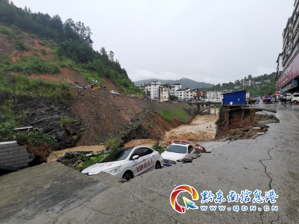 從江縣交警大隊(duì)接到群眾報(bào)警后,迅速趕到現(xiàn)場(chǎng),到達(dá)現(xiàn)場(chǎng)后民警發(fā)現(xiàn)塌陷處有3輛汽車被困,遠(yuǎn)處還有一輛白色汽車隨著水流被沖入都柳江中,青云橋停車場(chǎng)路段還有大量的車輛停放在塌方路段旁,塌方路段隨時(shí)都可能再次塌陷,情況十分危急,但因時(shí)間緊迫,警力上存在不足,民警立即聯(lián)合丙妹派出所民警全力維護(hù)現(xiàn)場(chǎng)道路交通秩序,并幫助現(xiàn)場(chǎng)群眾把車輛推到安全地帶,同時(shí)安排指揮中心人員通過(guò)電話聯(lián)系車主挪車。