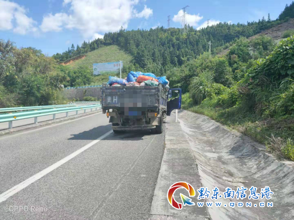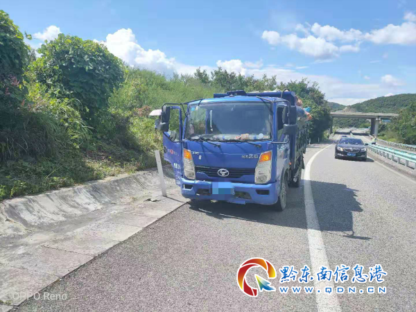 當天下午3點左右,貴州省黔東南州公安局交警支隊高速六大隊民警巡邏至從江東砸道路段時,發現一輛滿載貨物的藍色輕型自卸貨車停在匝道邊沿上,開啟應急燈,車輛險些沖下排水溝,情況非常危險。