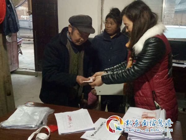 本網訊 12月20日,從江縣貫洞鎮八洛村村委會顯得格外熱鬧,在村黨員會議室里站滿了前來等待分紅的貧困戶群眾。