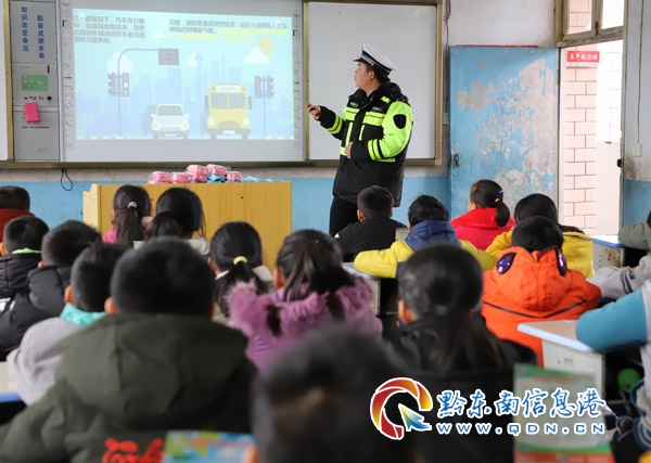 本網(wǎng)訊 近期,全國(guó)各地中小學(xué)校陸續(xù)開學(xué),為切實(shí)提學(xué)生的交通安全意識(shí),預(yù)防和減少涉及中小學(xué)生交通事故的發(fā)生,確保學(xué)生上學(xué)期間出行安全,2月26日,丹寨縣交警大隊(duì)組織宣傳民警走進(jìn)轄區(qū)龍泉鎮(zhèn)泉山小學(xué)五年級(jí)(3)班,開展開學(xué)第一課交通安全主題班會(huì)宣傳活動(dòng)。