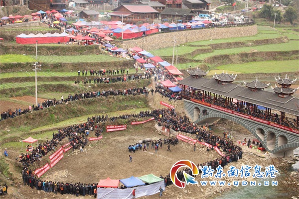 全翻鼓節(jié)歷時(shí)3天,至今已有近600年歷史,每年農(nóng)歷二月舉行。活動(dòng)期間,活動(dòng)主辦方舉行了踩鼓舞、斗牛、唱苗歌、篝火晚會(huì)等文娛比賽活動(dòng),每天都吸引上千周邊鄉(xiāng)鎮(zhèn)、村寨村民到場(chǎng)觀(guān)看。