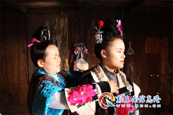 (梳妝打扮的苗家姊妹)
