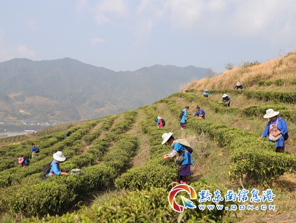 本網訊 3月21日,是農歷二十四節氣中的春分,在丹寨縣龍泉鎮羊甲茶園,采茶工人正在搶抓時機采摘春茶,茶園呈現出一派繁忙景象。(陸德華 攝)