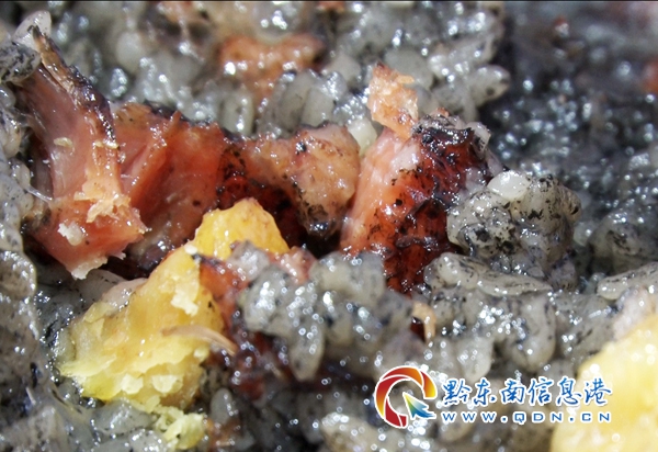 草灰粽是丹寨縣群眾在端午節(jié)期間必不可少的食品。主要的制作過程是先將糯米草燒成灰,用手把草灰與糯米拌勻,直到草灰將糯米染成深灰色,再把各種餡加入其中,包成不同味道的特色草灰粽子。