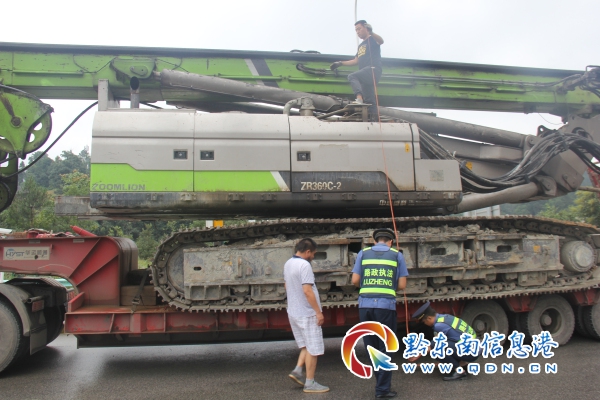 2019年9月1日,凱里高速公路管理處丹寨路政執(zhí)法大隊(duì)接到上級(jí)通知,一輛運(yùn)輸大型物件的車輛將于2019年9月1日由S62余冊(cè)高速凱里北收費(fèi)站駛向丹寨收費(fèi)站,目前該車已按照規(guī)定申請(qǐng)辦理了《超限運(yùn)輸車輛通行證》。