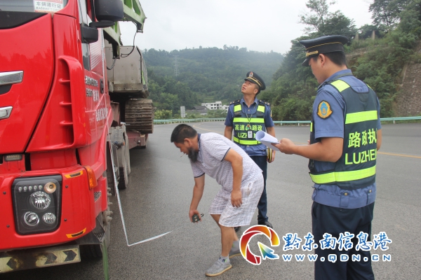 丹寨路政執(zhí)法大隊(duì)路政員來(lái)到凱里北收費(fèi)站現(xiàn)場(chǎng)對(duì)該車輛的外廓尺寸和重量進(jìn)行核查,通過(guò)核驗(yàn)該車實(shí)際裝載貨物的外廓尺寸和重量與所辦理的《超限運(yùn)輸車輛通行證》上顯示的信息相符,可以進(jìn)行放行。路政員要求駕駛員要嚴(yán)格按照《超限運(yùn)輸車輛通行證》規(guī)定的時(shí)間、線路、速度行駛,出發(fā)前要對(duì)車輛的車況和運(yùn)輸貨物的固定等進(jìn)行再次檢查,確保行車的安全。