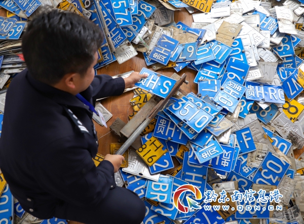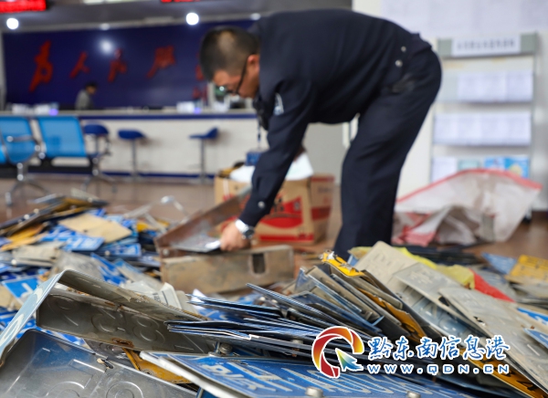 丹寨:集中銷毀千余副廢舊車牌(圖)