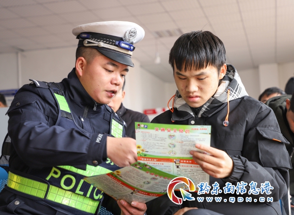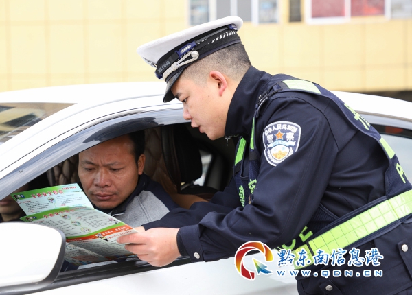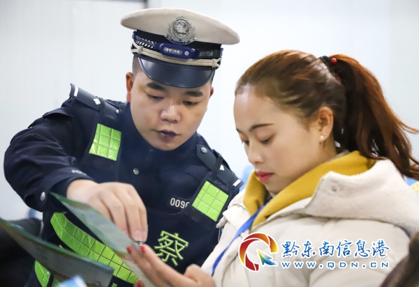 本網(wǎng)訊 12月27日,貴州省丹寨縣交警大隊(duì)宣傳民警走進(jìn)轄區(qū)駕校、車管所,向廣大駕考學(xué)員以及前來辦理業(yè)務(wù)的群眾宣傳交通安全知識(shí),進(jìn)一步提高他們的交通安全意識(shí),使自己成為一名合格的駕駛?cè)恕?陸德華 攝)