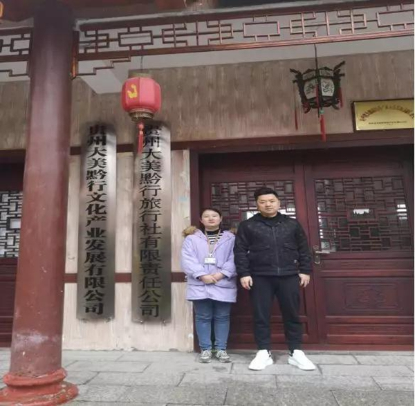 圖為:大美黔行旅行社副總梅林和導(dǎo)游陳鑫