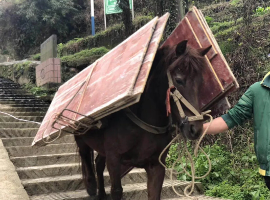 所有人全力投入活動準備中地形不便,馬兒來相助