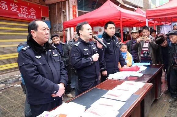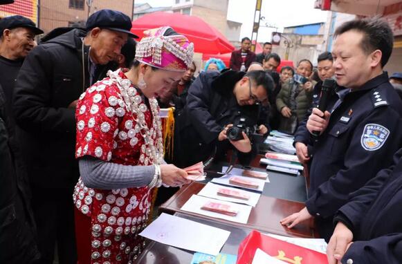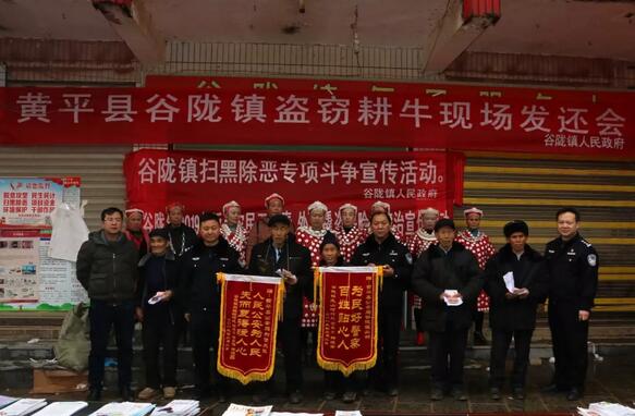 3月2日,正值谷隴鎮(zhèn)的趕集日,一群身著苗族盛裝的婦女敲著鑼鼓拿著錦旗行走在大街上,吸引了眾人的目光。原來,她們是來感謝黃平縣公安局為她們破案追回了丟失的耕牛。她們一個個身著盛裝,滿心喜悅的來參加盜竊耕牛案贓款贓物集中發(fā)還儀式。黃平公安局楊瑞冰副局長率刑偵大隊(duì)辦案民警將追回的被盜耕牛損失共計(jì)10.7萬如數(shù)發(fā)放到失主手中。