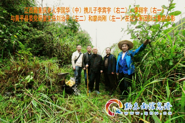 這次黃平尋親之行,面對兩所紅軍無名烈士墓,雖然李國華老人并不確切地肯定父親李冬茍的“家”是哪一所,但他覺得這兩位都是最親的人。回來的路上,他非常高興地對隨行的人員說:今天我的心情十分激動,也非常高興,因為自己此前為了想象中的紅六軍團在黃平戰(zhàn)斗過的地方,還不知今生今世能否找到。誰知這一來,還能親眼看到自己的親人長眠的地方,這80多年來的牽掛已經(jīng)滿足了。陪同的黃平縣委黨史研究室主任劉治平告訴李老,他們通過普查發(fā)現(xiàn)紅軍烈士墓后,已計劃明年將整合革命老區(qū)經(jīng)費,給這些為中國人民的翻身解放事業(yè)拋頭顱、灑熱血的革命先烈們重新修繕陵墓,以“不忘初心、牢記使命”的行動來告慰革命前輩們。
