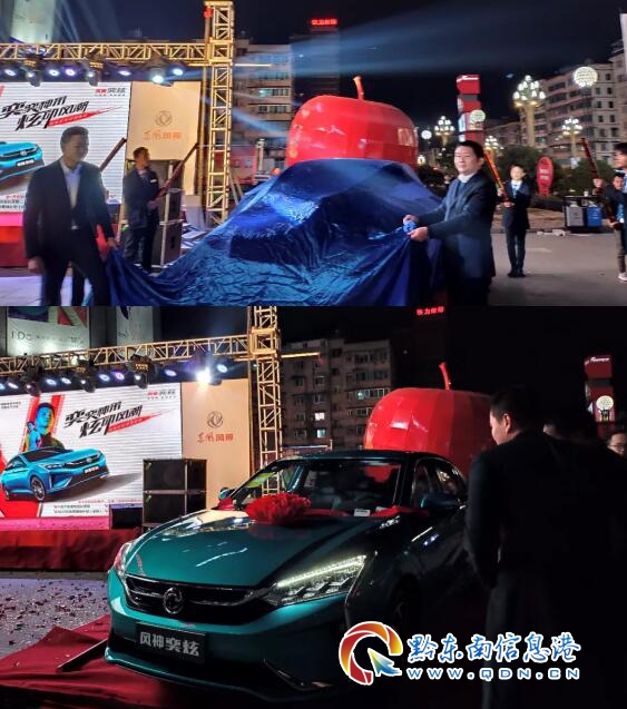 由胡總和鄧部長為凱里現場訂購風神奕炫的車主頒發新車鑰匙和奕炫車模。