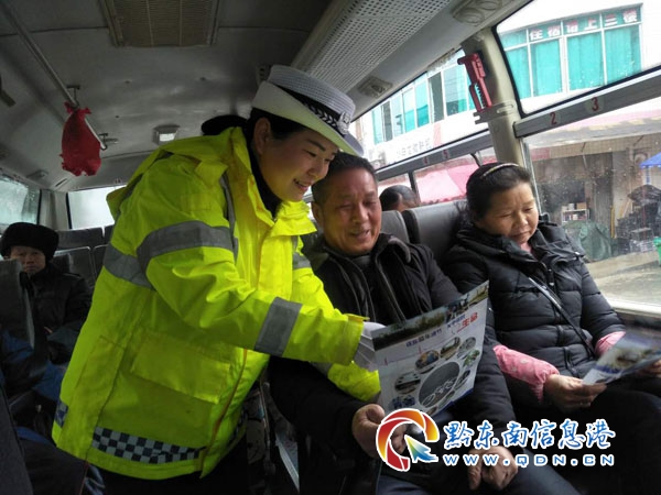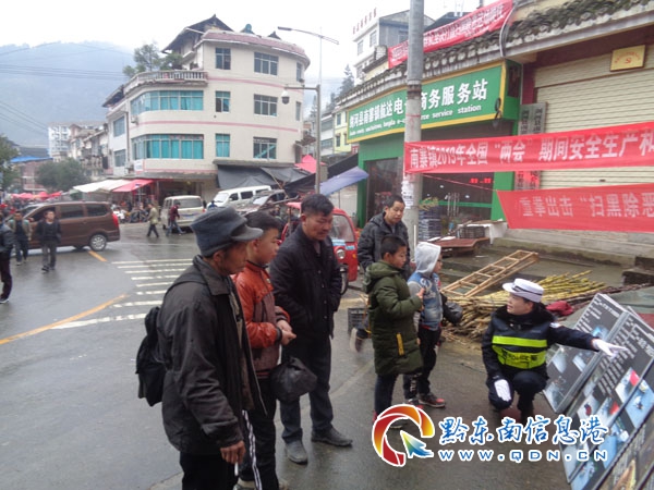 本網訊 為提高廣大外出務工人員的交警安全意識,連日來,劍河縣公安局交警大隊農村片區三中隊利用南寨鎮“趕集日”積極開展外出務工人員交通安全宣傳教育活動,向外出務工者發放《致外出務工者的一封信》、《外出務工交通安全注意事項》、《安全出行平安卡》等宣傳材料,為外出農民工備齊“安全行李”。