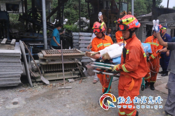 確定方案后救援人員立即展開行動,在充分做好安全防護工作的前提下,確保受傷人員不再受到二次傷害,利用無齒鋸進行切割破拆,10余分鐘后滾動軸的一端被成功切斷,但是另一端空間狹窄無法進行切割。時間就是生命,被困人員需要盡快救出,此時,指揮員果斷決策利用叉車協助救援,將機器的機床進行抬高露出滾動軸另一端便于切割施救,施救過程中,因滾動軸是純鋼打造,硬度極高,救援空間狹小,氣溫較高,救援人員克服困難拼盡全力對被困人員進行施救。在全體救援人員的共同努力下,于11時36分將被困人員成功救出,消防救援人員協助醫生在現場對傷者進行包扎并送上救護車。