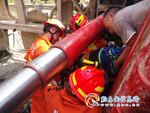 本網訊 7月28日,劍河縣岑松鎮塘腳村發生一起交通事故,一輛卡車掉下路旁山坡,卡車駕駛員被困駕駛室內無法動彈。劍河縣消防大隊接到報警后,迅速趕往現場施救。