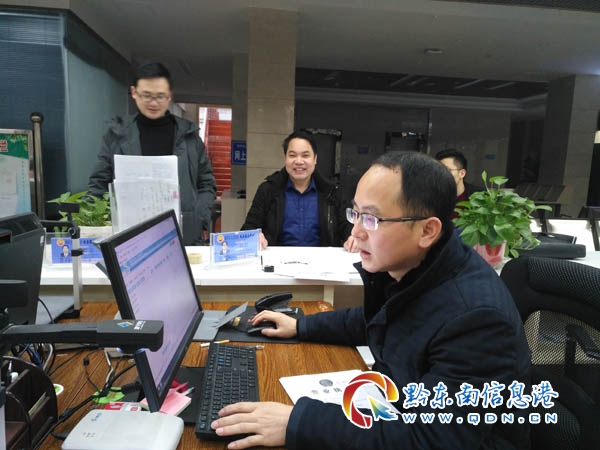 錦屏縣不動產登記人員正在受理不動產登記件
