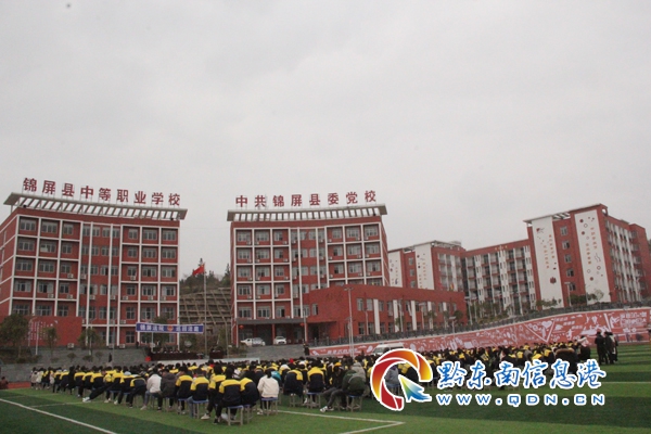 本網訊 2月25日,正值錦屏縣中等職業學校開學的第一天。縣法院刑事審判庭到該校操場巡回審理一起運輸毒品案。該校近600余名師生和轄區部份人大代表、政協委員和臨近的部份村民零距離旁聽了該案的審理。