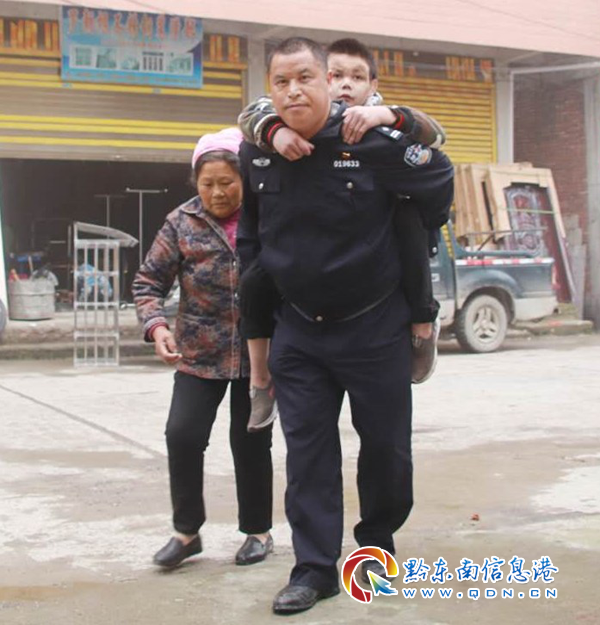 4月21日下午,錦屏縣公安局彥洞派出所所長姜杰,得知龍朝壇的情況后主動上門將其背到派出所幫助辦理了身份證,后又將其背送到家中。